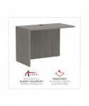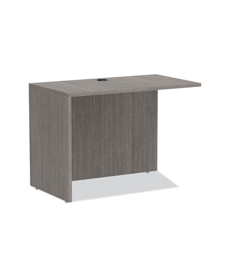 Universal application office furniture piece that can be used as either as a return or bridge to create "U" or "L" shaped workstations. Durable, 1'' thick worksurface and side panels are water, scratch and dent-resistant. Full-height modesty panel. Flexible design that adapts to right or left-handed configurations. Fitted with one wire management grommet to keep cords tucked away for increased organization and safety. Protective 3 mm edge banding.