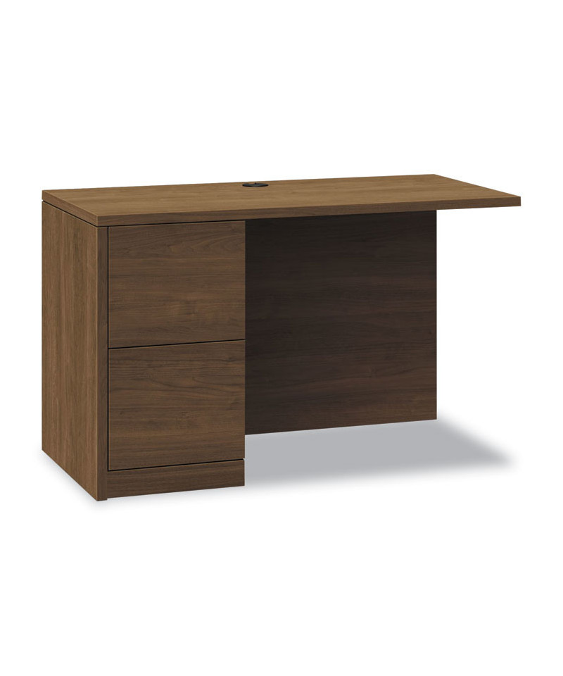 Desk and Return sold and shipped separately—ORDER BOTH. Exclusive reinforced pedestal construction makes this HON return withstand daily wear and tear like no other. Pedestal drawers open fully to give easy access to all contents. Drawers glide on steel ball-bearings for years of smooth, reliable performance. Premium, multi-ply laminate stands up to scratches, spills, stains and boiling liquids, and holds up under heavy use. Full-height modesty panel for privacy. All drawers lock using the same key; lock core can be changed as security needs require.
