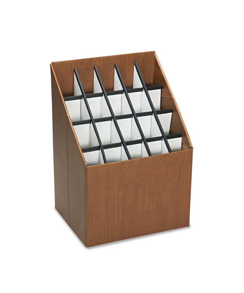 The Upright Roll File is the perfect organizational solution for any workspace, combining style and functionality. Made from durable corrugated fiberboard with a sophisticated walnut woodgrain finish, this file organizer features square tube openings, ideal for storing large file documents, reports, and folders. Each compartment is reinforced with sturdy plastic molding, ensuring long-lasting durability and strength. The upright design saves valuable desk space while keeping your documents neat, accessible, and easy to find. Whether you're managing important files in an office or at home, this sleek, modern roll file helps you stay organized and productive. Upgrade your workspace with the Upright Roll File and enjoy a clutter-free, efficient environment.