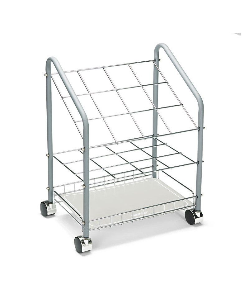 Organize your rolled up documents, plans, posters, paper, proofs, blueprints and maps into tidy rows for easier visibility and access around your home, office or classroom with the Safco Tubular Steel Wire Mobile Roll File. Slot your rolled up documents or tube-style blueprint holders into the 2.75"-square compartments to keep them organized and readily available. The Steel Mobile Roll File's tiered, grandstand-style arrangement of its compartments accommodates rolls of different lengths and helps keep them separated enough so that you can both see and access each with greater ease. Easily maneuver the Steel Mobile Roll File around your immediate workspace on its four 1.5" pivoting wheels to help keep your rolled up reference documents and materials closer to where you're actually working, so they're always within reach. Lock the two front wheels when you come to a stop for added stability while stationary. Featuring powder coated tubular steel side supports and chrome-finished steel wire grids, this Roll File ships ready to better withstand everyday use in your office, home or school and maintain its professional look for longer. And it's not just for engineering and architecture, either. Safco's Tubular Steel Wire Mobile Roll File can also help tackle the tall task of wrangling your holiday wrapping paper collection at home or putting the packing supplies in proper order in your office mailroom – even use it in the classroom to keep maps and reference charts organized and easily accessible.