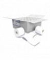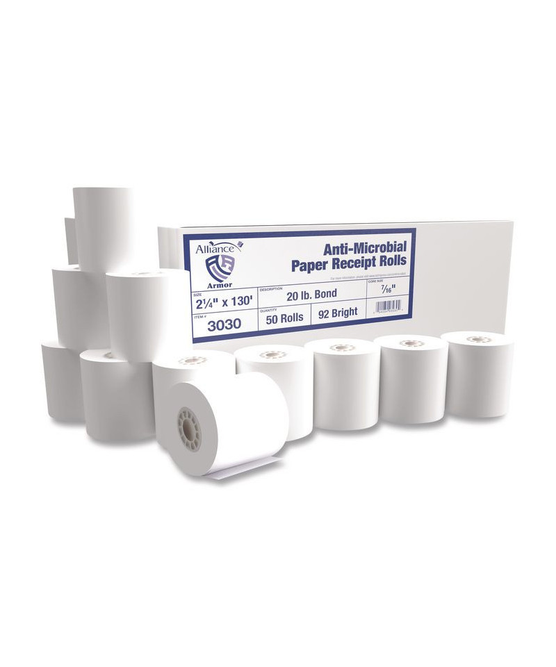 This paper roll is treated with silver ion technology to provide antimicrobial product protection against unwanted microorganisms. It protects the paper from microbial transfer and growth, creating a barrier to inhibit the growth of microorganisms.