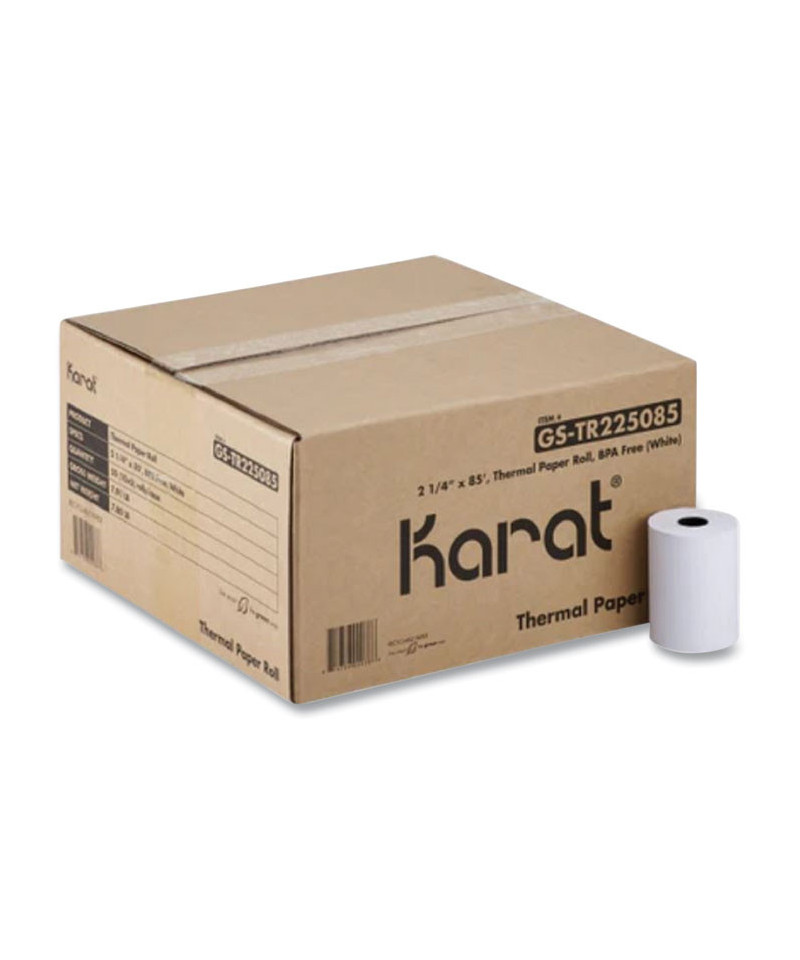 Karat® Thermal Paper Rolls provide high quality and clear prints for any business use. Rolls are ideal for cash registers, credit card machines, mobile printers and more! Print with these easily replaceable paper rolls to keep track of purchases or records. The thermal rolls are BPA free.