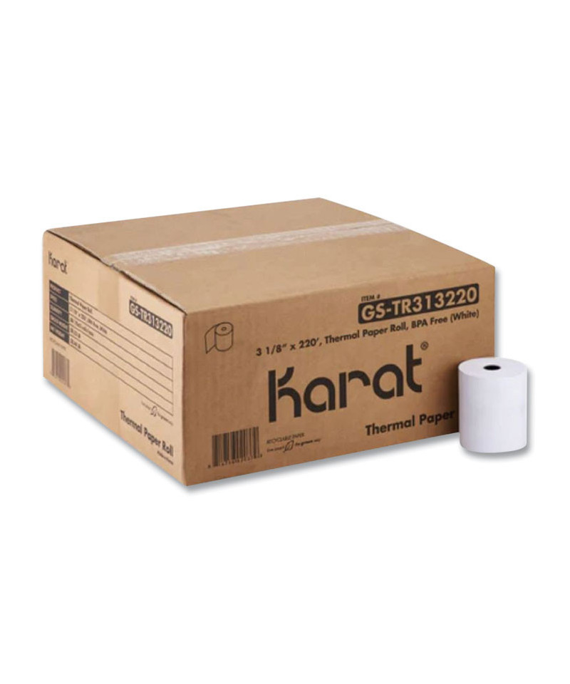 Karat® Thermal Paper Rolls provide high quality and clear prints for any business use. Rolls are ideal for cash registers, credit card machines, mobile printers and more! Print with these easily replaceable paper rolls to keep track of purchases or records. The thermal rolls are BPA free.