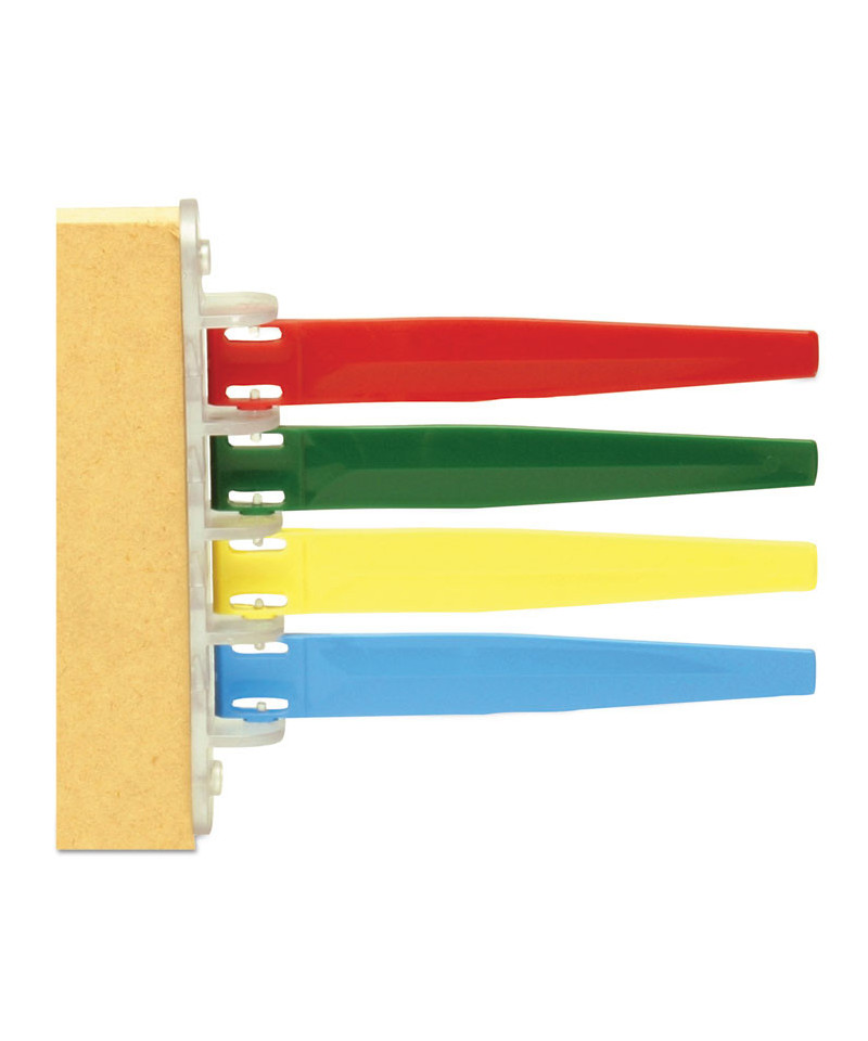 Movable color-coded flags make it easy to clearly mark each stage in a process. Designed for medical exam rooms to help keep patient flow efficient and smooth. Great for use in a variety of settings, from medical to food service, to industrial: install a flag anywhere there's a multi-stage process which requires different staff members to execute. Each flag moves independently and stops in five positions. Easy to mount, with two screws included in each package.