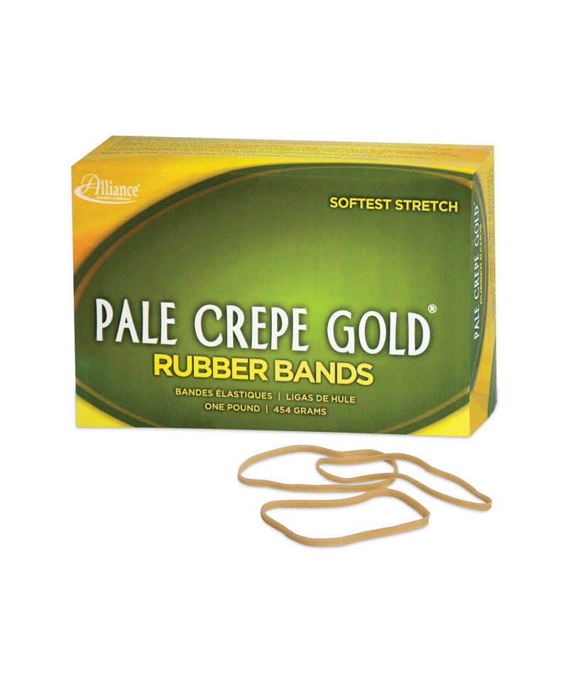 Pale Crepe Gold rubber bands feature the softest stretch and the highest natural-latex rubber content of any comparable product. A higher natural rubber content equates to a lighter-weight band with greater stretchiness and increased longevity; and as a bonus, when buying by the pound, you receive more of what you need for less. Though great as a general-purpose band for a wide range of tasks around the home, office and workplace, these bands are particularly useful for delicate- and pliable-goods packaging applications, from food to musical instruments, fine-art poster-prints to valuable trading cards. Their soft stretch also makes these bands ideal for repetitive tasks where minimizing hand-stress and fatigue or minimizing the potential for repetitive-strain injuries might be desired. Use these bands again and again without worrying about whether they'll remain strong and intact-they're designed for it.