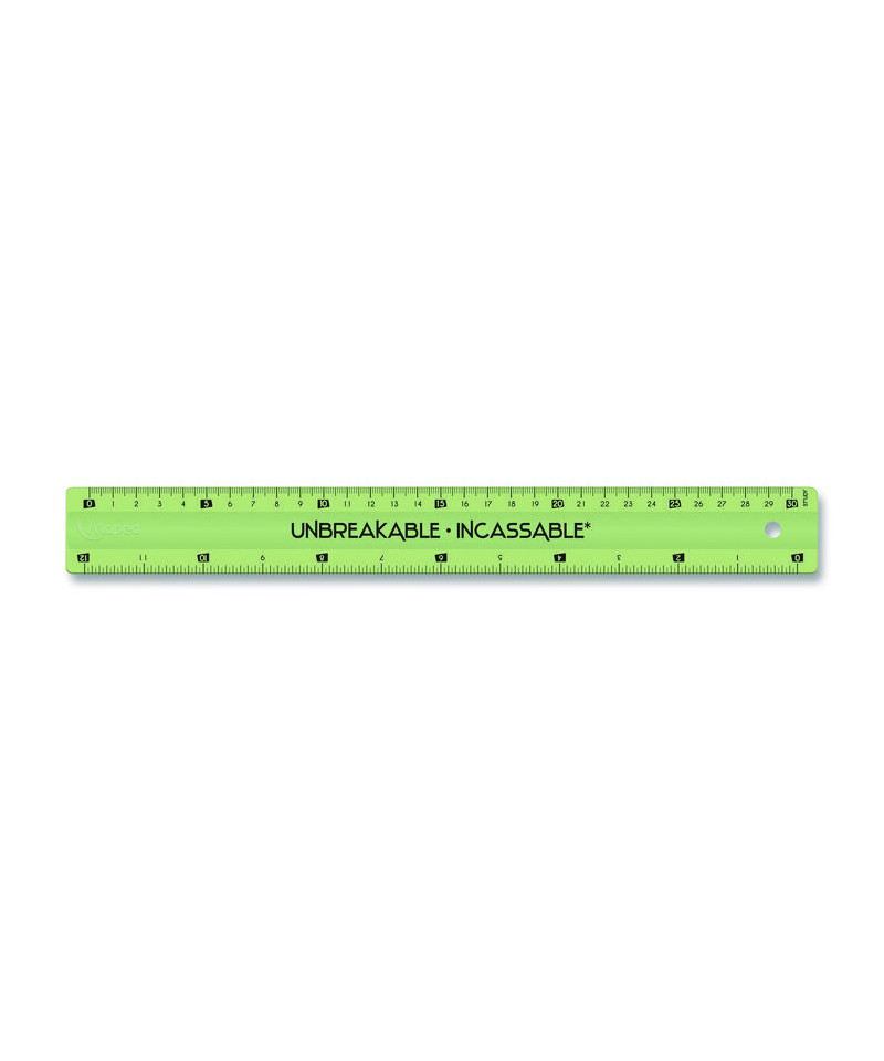 A brand-new innovation from Maped! The Unbreakable Ruler is made of a unique material that is durable enough for even the messiest classrooms, but is still light and flexible enough for even the youngest students to use. Transparent colors make it easy to see what you are measuring. Features both Standard and Metric graduations and a convenient hang hole for storage. Ruler is unbreakable under normal conditions and use.