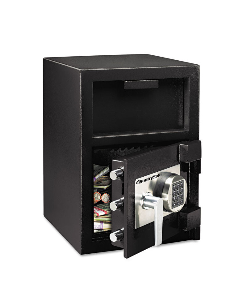 Depository safe is a must have for security conscious business managers. It’s uniquely designed to protect cash receipts, deposit slips, keys and other valuables against theft and burglaries at the point of purchase. Reduce your chance of being robbed by making frequent deposits in your drop safe container. Designed with a host of security features including hardened steel lock plate, programmable electronic locks, anti-fish hoppers and anti-pry doors. Bolt-down included.