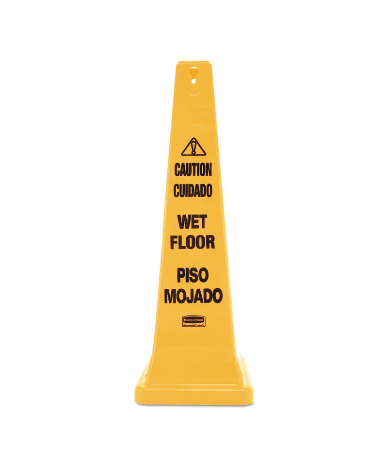 Alert co-workers and visitors alike to proceed carefully. Message is printed in English and Spanish on all four sides of bright yellow cone. Can be read from 40 ft. away. Stackable for easy transport and storage.