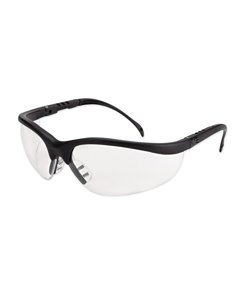 Attractive, modern design gives you a stylish, light-weight option that you'll want to wear all day long. Strong polycarbonate lenses provide excellent protection from flying debris. Adjustable temples and gel nose piece enhance wearing comfort.