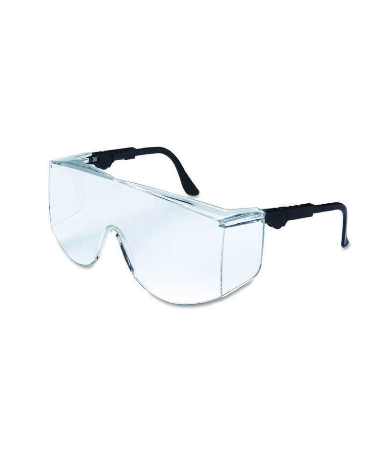 No frills, effective safety glasses. Made of a durable, lightweight, scratch-resistant polycarbonate, the one piece wraparound lens provides a wide field of vision and reliable protection. The Duramass® scratch-resistant coating minimizes the damage of desktop falls, laboratory mishaps and construction site wear and tear.