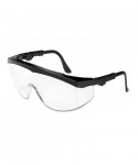 Lightweight safety glasses with a scratch-resistant, polycarbonate, wraparound lens. Fully adjustable temples with ratchet for custom fit and one-piece lens with integral side shields. Filters 99.9% of UV rays.
