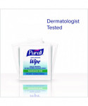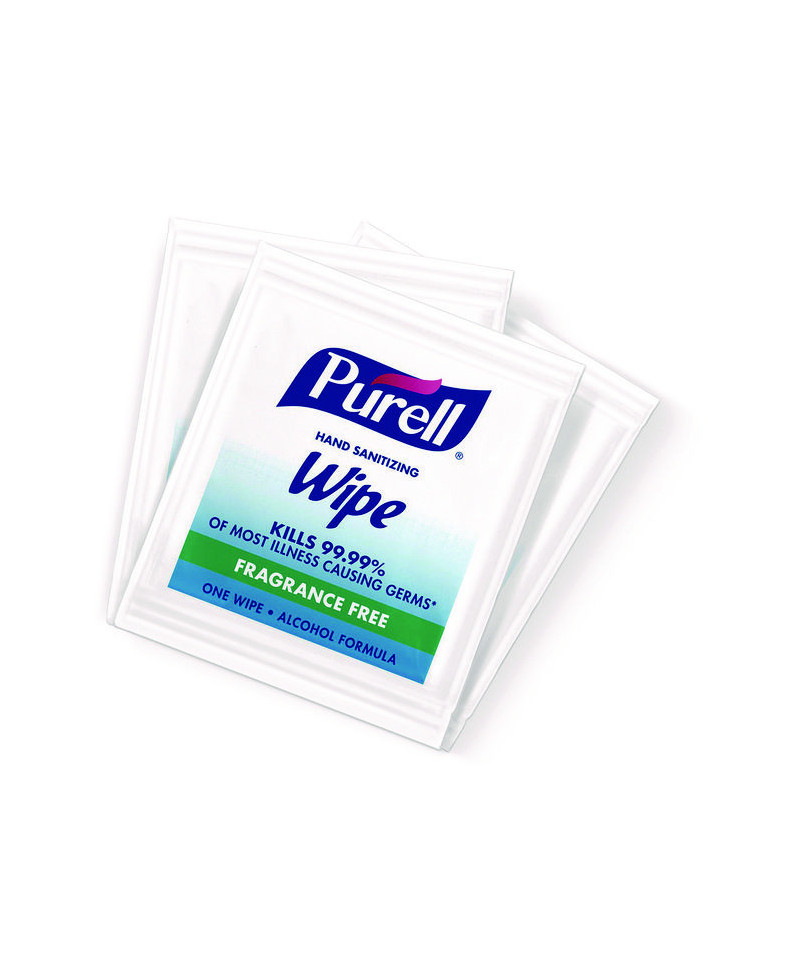 Help your family and those you care for kill germs on their hands with PURELL Hand Sanitizing Wipes. You don't want to think about it, but it's true – illness-causing germs are everywhere – at home, at work, and when you're out and about. We know that life moves fast, and that washing your hands with soap and water is not always an option. Using PURELL hand sanitizing wipes on multiple occasions throughout the day conveniently helps eliminate germs on your hands. PURELL hand sanitizing wipes are proven to kill 99.99 percent of most common germs that may cause illness, without damaging skin. These pre-moistened wipes are soft textured and durable to gently clean up hands. They are also dermatologist tested, providing safe and effective cleaning when soap and water are not available. These individually wrapped hand wipes fit just about anywhere. Put in your pocket or bag. Add to boxed lunches or meal trays, as a caring touch. PURELL hand sanitizing wipes are formulated to be gentle on skin. They are free of harsh preservatives and do not contain dye, triclosan, parabens or phthalates.