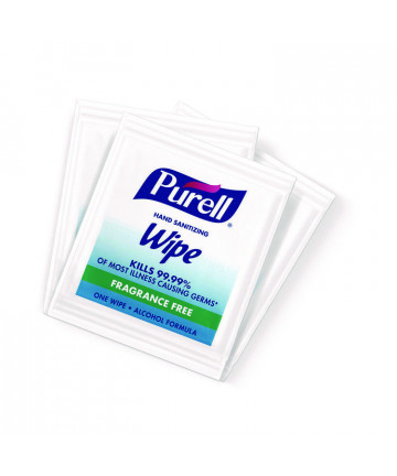 Help your family and those you care for kill germs on their hands with PURELL Hand Sanitizing Wipes. You don't want to think about it, but it's true – illness-causing germs are everywhere – at home, at work, and when you're out and about. We know that life moves fast, and that washing your hands with soap and water is not always an option. Using PURELL hand sanitizing wipes on multiple occasions throughout the day conveniently helps eliminate germs on your hands. PURELL hand sanitizing wipes are proven to kill 99.99 percent of most common germs that may cause illness, without damaging skin. These pre-moistened wipes are soft textured and durable to gently clean up hands. They are also dermatologist tested, providing safe and effective cleaning when soap and water are not available. These individually wrapped hand wipes fit just about anywhere. Put in your pocket or bag. Add to boxed lunches or meal trays, as a caring touch. PURELL hand sanitizing wipes are formulated to be gentle on skin. They are free of harsh preservatives and do not contain dye, triclosan, parabens or phthalates.