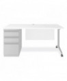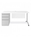 Ideal for both educational offices and classrooms, the Modern Teacher Series Pedestal Desk features a thoroughly modern design that's as attractive as it is practical. Its durable, easy to clean, easy to disinfect laminate worksurface is supported by a swivel-caster equipped T-leg on one side and a mobile pedestal on the other, which lends the desk an airy, light appearance without compromising on functionality or maneuverability. The worksurface's T-mold edge-band also provides an extra measure of safety, which can be very important in busy classrooms. Full-height pedestal features hidden casters and locking drawers with full-width drawer pulls.