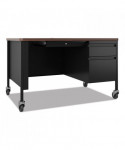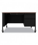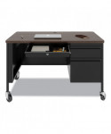 Mobile Teachers Pedestal Desks, Right-Hand Pedestal: Box/File Drawers, 48" x 30" x 29.5", Walnut/Black