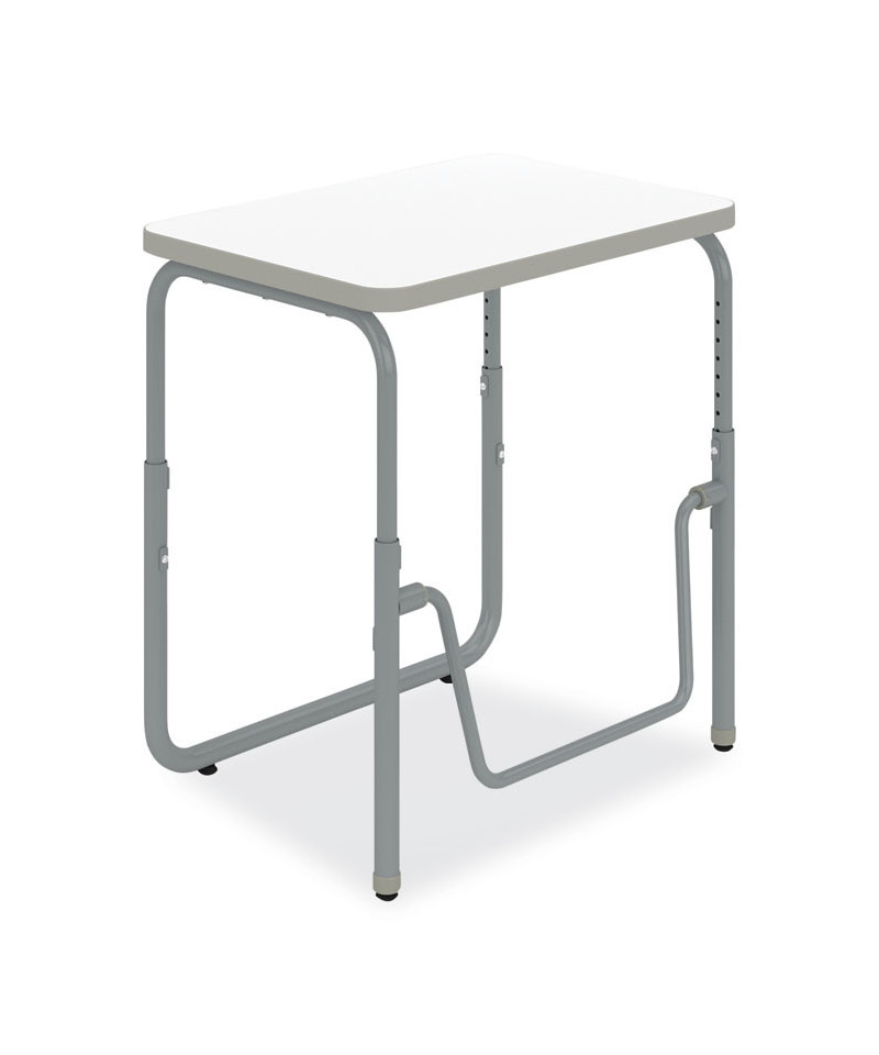 Encourage healthy movement and provide convenient storage with this height-adjustable student desk that features a high-pressure laminate top. This desk comfortably accommodates students of all sizes as they work or sketch ideas. A pendulum footrest allows students to redirect excess energy and continue to move, even as they sit, providing ergonomic support, increasing comfort, and promoting cardiovascular health. Great for boosting productivity and focus, this student desk has the added benefit of optional casters for better mobility throughout the classroom. Height adjusts accommodating students in 5th grade and up as well as adults at seated and standing heights.
