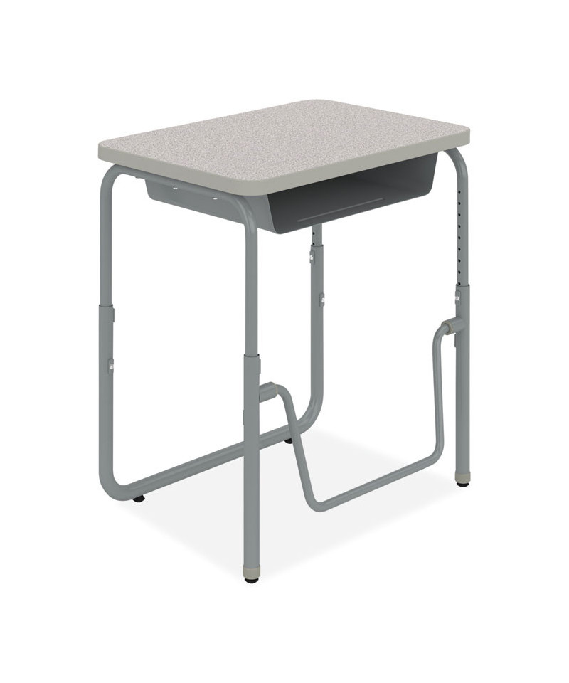 Encourage healthy movement and provide convenient storage with this height-adjustable student desk that features a high-pressure laminate top. This desk comfortably accommodates students of all sizes as they work or sketch ideas. A pendulum footrest allows students to redirect excess energy and continue to move, even as they sit, providing ergonomic support, increasing comfort, and promoting cardiovascular health. Great for boosting productivity and focus, this student desk has the added benefit of optional casters for better mobility throughout the classroom. Height adjusts accommodating students in 5th grade and up as well as adults at seated and standing heights.