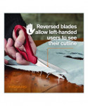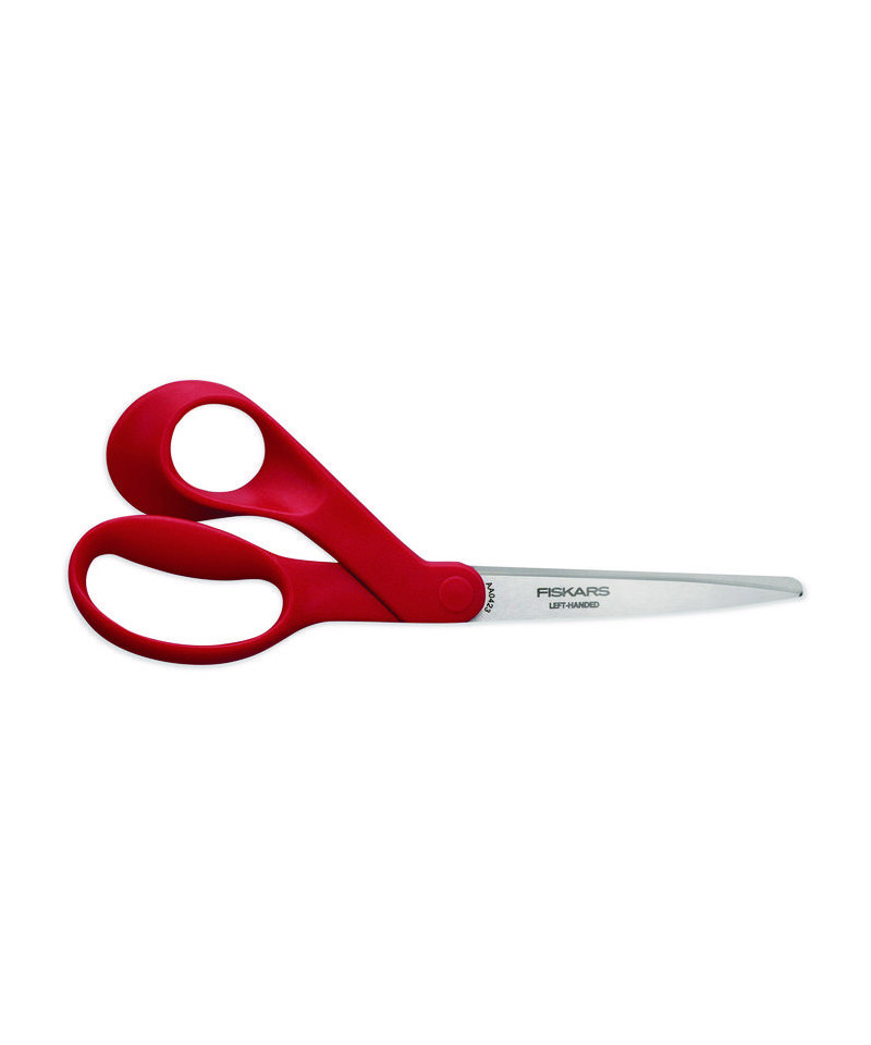 Left-handed scissors feature ergonomic handles for unmatched comfort and control. Bent handle design keeps material flat while cutting. True, left-handed blades are made of hardened, stainless steel delivering lasting sharpness. 8" scissors are tested to ensure clean cutting even through multiple layers of cloth.
