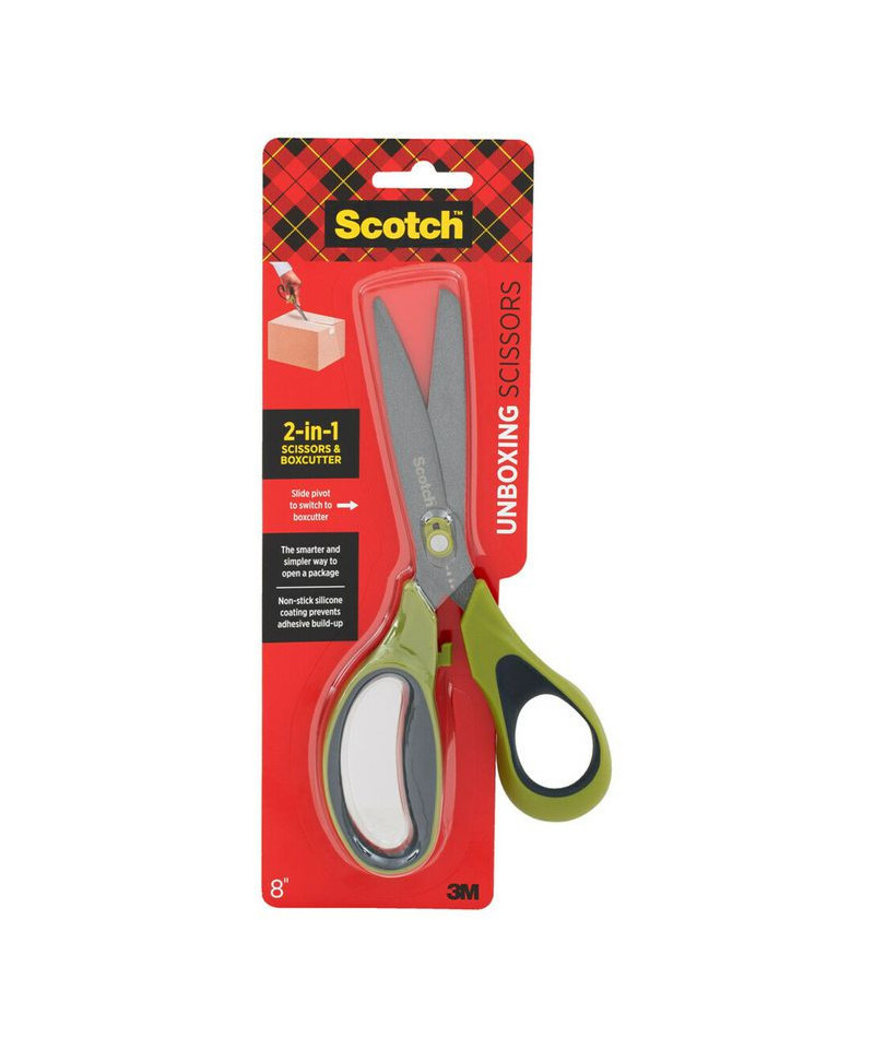 Non-Stick Unboxing Scissors are ideal for opening any shipment that arrives at your door. High-quality, precision-sharpened blades maintain their edge for more than 100,000 cuts, while their non-stick, silicone coating resists adhesive build-up. Unique 2-in-1, scissors/box-cutter design—simply slide the pivot to convert from scissors to box-cutter and back. Soft, comfort-grip handle helps minimize fatigue, even when tackling a mountain of ecommerce packages. These scissors are an all-around pair that are equally useful at opening boxes, mailers and clam shells as they are at crafting, scrapbooking and school projects. No home or office should be without a pair of these all-purpose scissors.