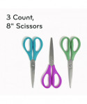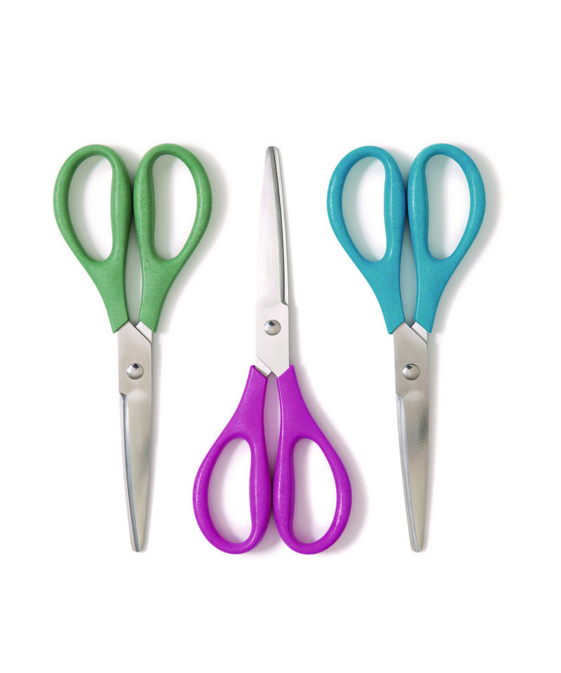 Introducing U Brands® three-pack U-Eco™ Scissors. Brought to you by U Brand's passion to provide you with office tools that are better looking and better performing. We minimized the amount of plastic used to produce these scissors and replaced it with reclaimed and renewable wheat straw (that's what the little speckles are). These scissors feature patented concave blade technology which allows for sharper, easier cuts across more materials.