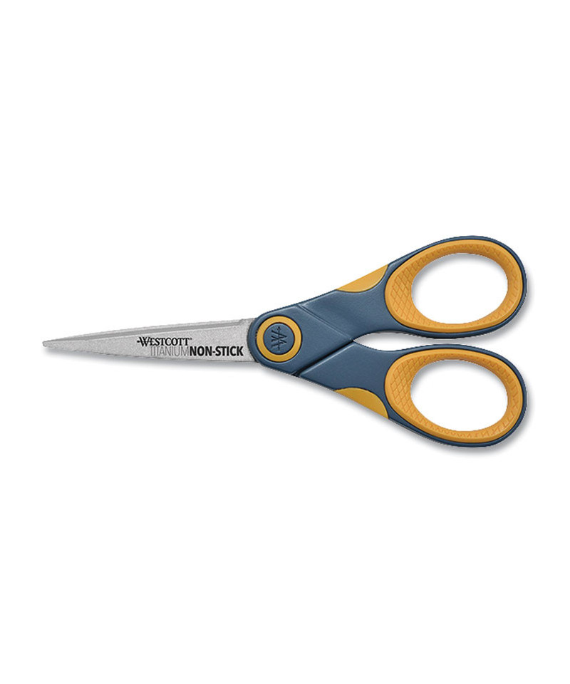Westcott Titanium Bonded Non-Stick blades are six times longer lasting than the previous formula. Westcott uses a process that bonds Titanium Bonded to the blades and then coats them with a breakthrough non-stick formula to produce an adhesive-resistant, easy-to-clean, and longer-lasting cutting edge. Glide provides a no tool adjustable glide technology for optimal cutting performance which allows less tension for thin materials and higher tension for thicker material. These scissors will stay sharp, smooth-cutting and residue-free for years making them an exceptional value like all Westcott products.