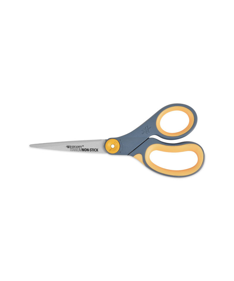 Non-Stick Titanium Bonded Scissors, 8" Long, 3.25" Cut Length, Straight Gray/Yellow Handle