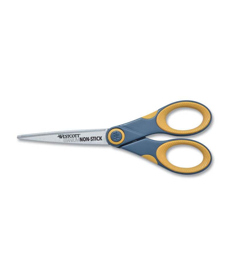 Westcott Titanium Bonded Non-Stick blades are six times longer lasting than the previous formula. Westcott uses a process that bonds Titanium Bonded to the blades and then coats them with a breakthrough non-stick formula to produce an adhesive-resistant, easy-to-clean, and longer-lasting cutting edge. Glide provides a no tool adjustable glide technology for optimal cutting performance which allows less tension for thin materials and higher tension for thicker material. These scissors will stay sharp, smooth-cutting and residue-free for years making them an exceptional value like all Westcott products.