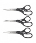 KleenEarth Basic Plastic Handle Scissors, 8" Long, 3.25" Cut Length, Straight Black Handle, 3/Pack