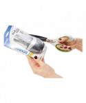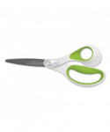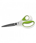 Patent-pending CarboTitanium® blade-bonding technology, one of the hardest titanium-surface treatments available. Industrial-strength blades easily cut through multiple layers of fabric, cardboard, canvas, vinyl magnets and more. Blade surface will not chip, flake or peel. Scissors have a unique ergonomic over mold and high-strength handle.