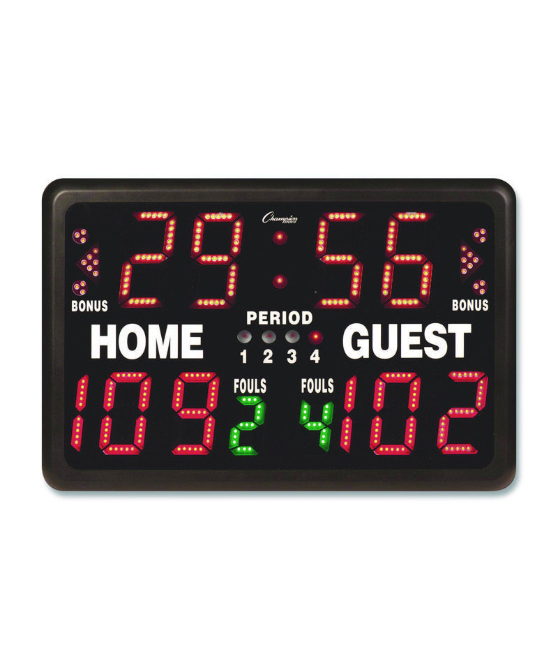 Great for games and tournaments, the Champion Sports Multi-Sport Tabletop Indoor Electronic Scoreboard is designed to keep score for any game. With a built-in horn/buzzer and period bonus with possession indicator, this electronic scoreboard can be used for many sports, including hockey, lacrosse, volleyball and wrestling. The built-in control panel offers user-friendly settings, while the large LED readouts make this scoreboard visible up to 150 ft away.