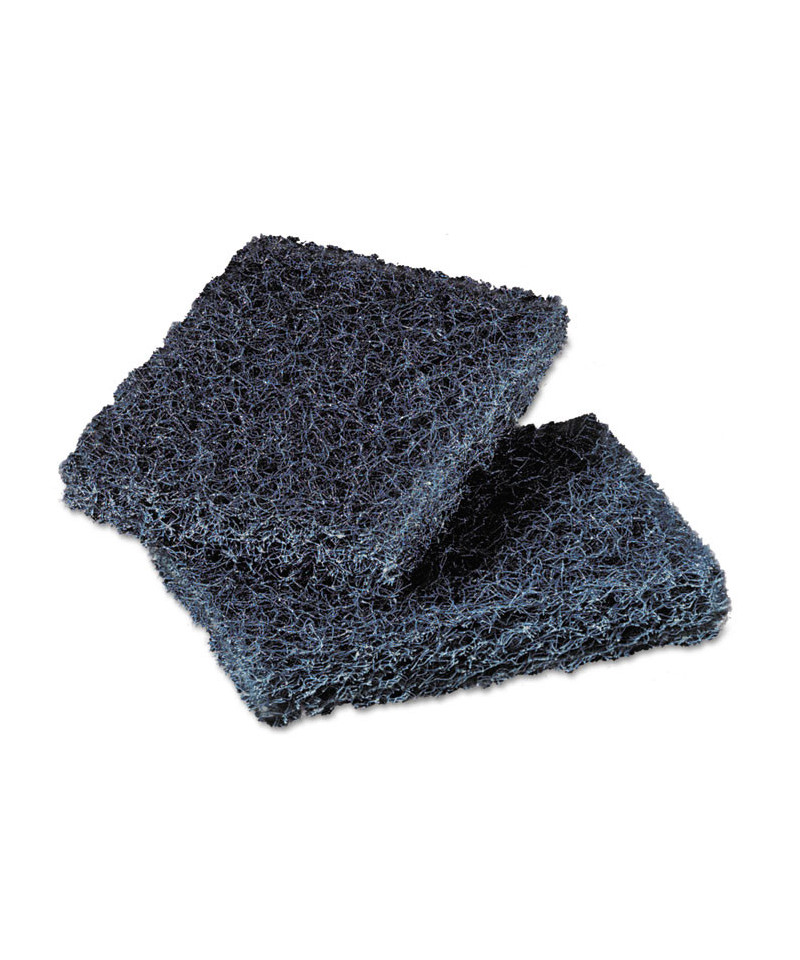 Aggressive scouring pad quickly removes stubborn dirt and grime from kitchen and maintenance equipment. Thick, open-mesh construction rinses out easily, doesn't splinter and won't rust. Removes heavily encrusted baked-on food from pots and pans. Use in place of metal sponges.
