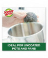 High quality stainless steel scrubber for tough cleaning chores. Easily removes baked-on food from pots, pans, baking dishes, grills and ovens. High quality grade stainless steel withstands breakage under normal usage. Stainless steel is durable and corrosion resistant, withstanding exposure to hot water, detergents and normal cleaning liquids. Single wire strand construction to eliminate multiple ends. Great for use in cleaning, scouring, and scrubbing pots, pans, baking dishes, broiler pans, grills and ovens. Excellent performance in removing baked-on food from cookware.