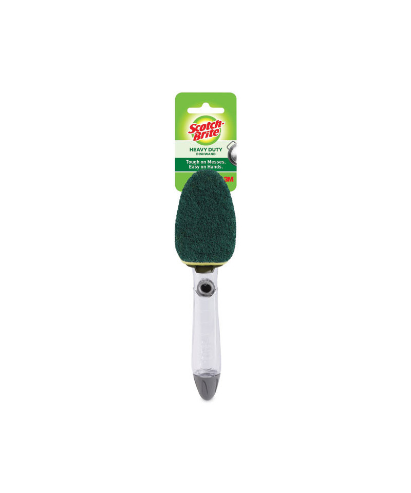 Heavy-duty dishwand keeps hands out of the mess! Tough scrubbing head tackles your pots and pans. Simply replace the head when it's worn out. Replacement sponge heads sold separately.