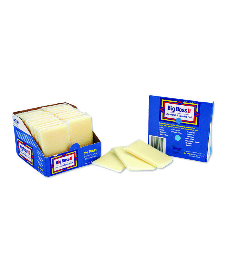 Commercial-size cleaning pads for heavy-duty scouring. Cleans the toughest grime without scratching or damaging surfaces. Packaged in a convenient display case.