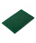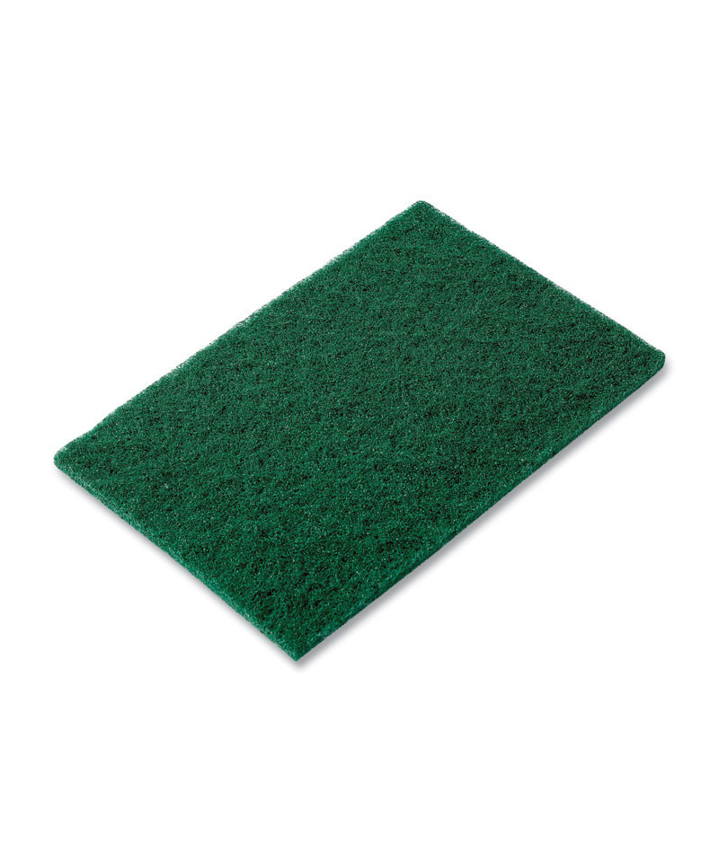 Scouring pad for use on walls, railings, floors, desks, coffee makers, broilers, stairways, counters and scrubbing vegetables. Tough fibers and abrasives make fast work of medium-duty cleaning jobs. Flexible pad allows for easy removal of baked-on foods in difficult corners and hard-to-reach places.