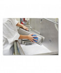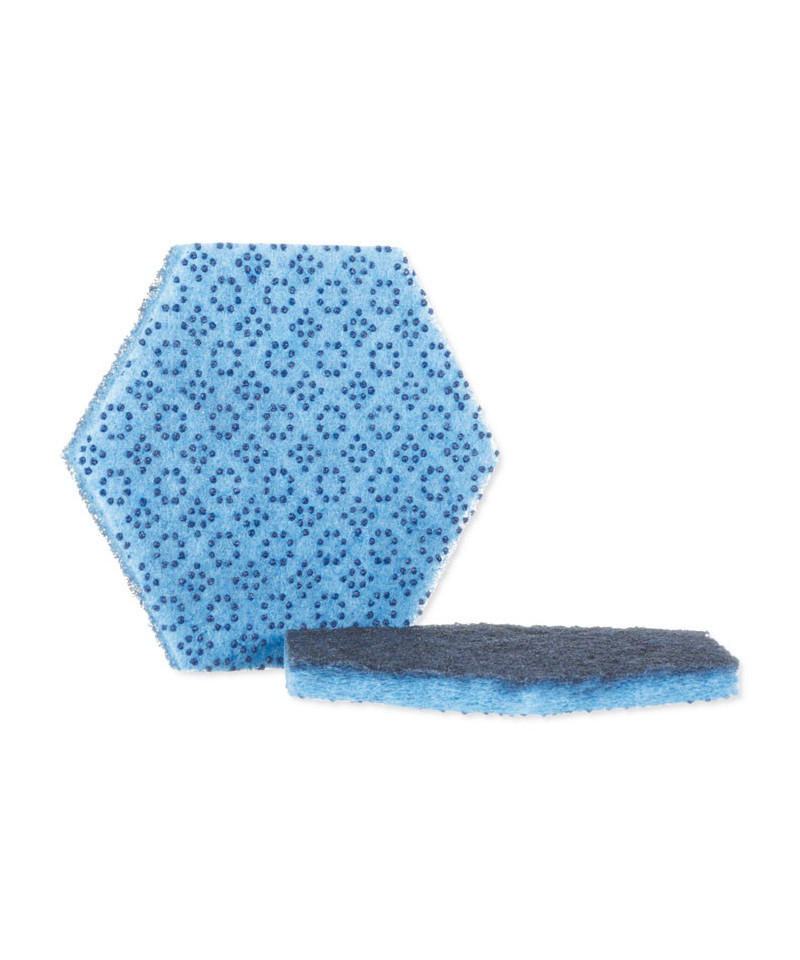 Maximize your cleaning efficiency with this low-scratch scour sponge. This two-in-one scour pad features innovative raised power dots on the light blue side of the pad, designed to cut through tough messes, while its dark blue side scours away fine food particles for a virtually spotless finish on your surfaces. The scour sponge works to aggressively cut through baked-on or burnt-on food faster, while also producing less visible scratches, making it great for multi-purpose cleaning. The ergonomic hexagon shape of the pad fits comfortably into the user's hand, making it easy to clean hard-to-reach areas, no matter which side you're using.