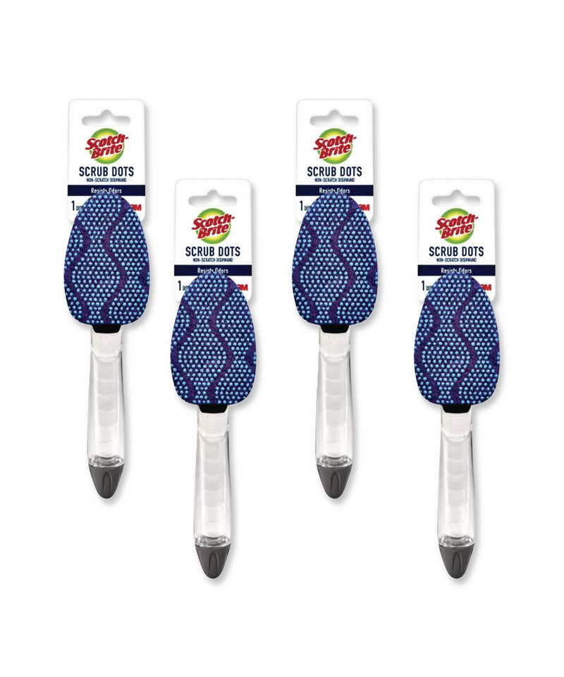 Resists bacterial odor. Long lasting and durable scrubbing surface. Won't trap food. Unique scrubbing surface rinses clean of any and all kinds of food debris. Non-scratch cleaning. Safe for non-stick cookware. Replacement sponge heads sold separately.