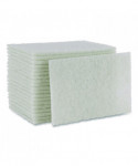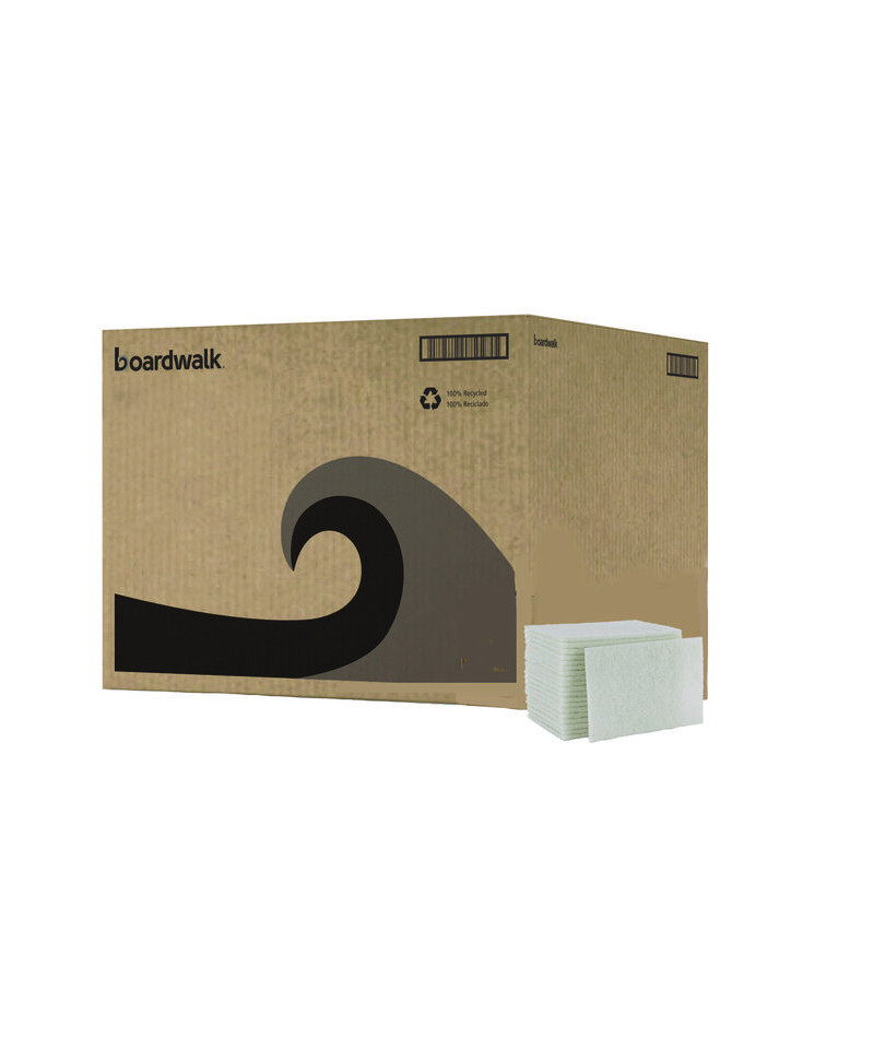 Medium thickness, light-duty, white scouring pads are the perfect cleaning tool for light-duty cleaning jobs. The textured pads provide more scrubbing power than a sponge or cloth, but are less abrasive than heavy-duty scouring pads. Strong and durable pads are ideal for surfaces in kitchens and bathrooms. They can be used to clean glass, stainless steel, porcelain, chrome, copper and ceramic surfaces. Won't scratch or dull most surfaces. Compatible with Boardwalk® Swivel Pad Holder (sold separately).