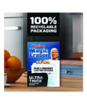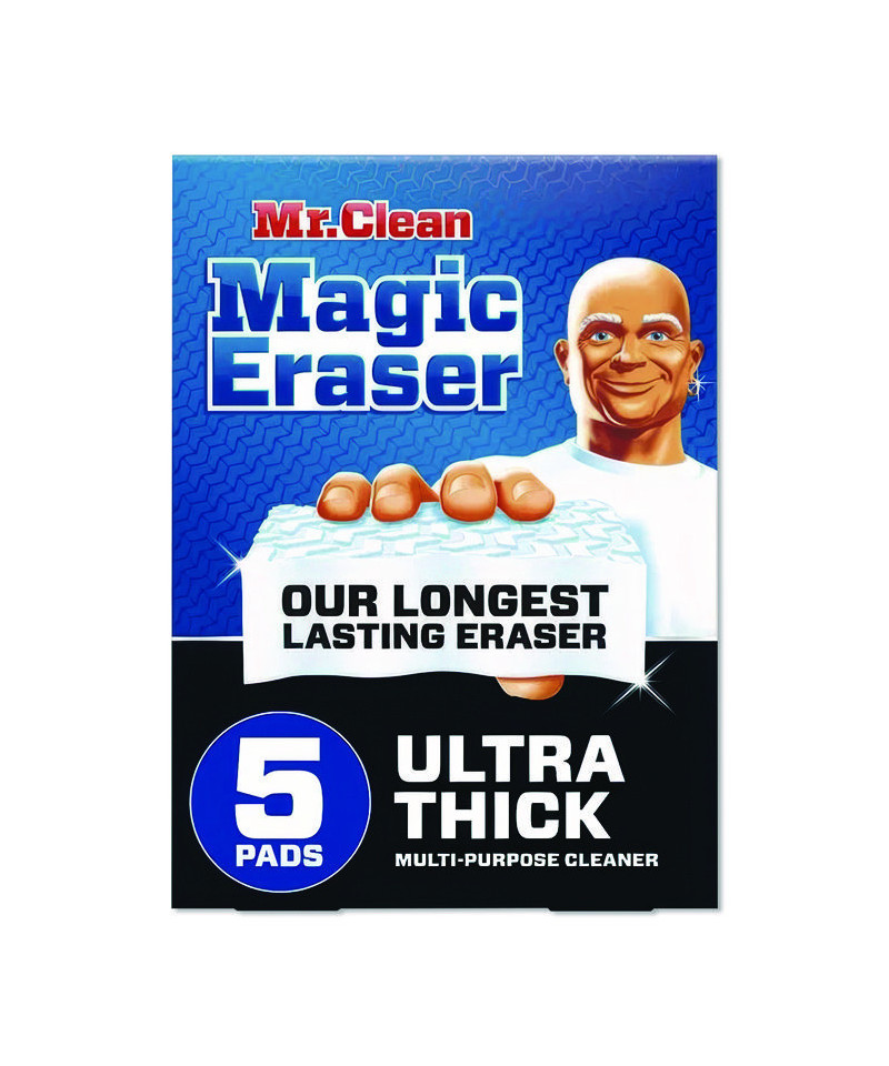 The Mr. Clean Magic Eraser Ultra Thick multi-surface cleaner lasts seven times longer than the Original Magic Eraser: no more sponges or other cleaning products needed. Just wet, squeeze, and erase over 150 messes with ease. The heavy-duty cleaning micro-scrubbers reach deep into surface grooves, lifting away built-up dirt and grime. The Magic Eraser Ultra Thick is an all-purpose cleaner that tackles tough messes all over your house, inside and out. Use it as a bathroom cleaner on soap scum, tub rings, and water spots. Use it in your kitchen on permanent marker stains, greasy counters, and grimy stovetops. Use it outdoors on grill grates and patio furniture. Also makes a great shoe cleaner and wall cleaner. Add the Magic Eraser Ultra Thick cleaner to your arsenal of cleaning supplies today.