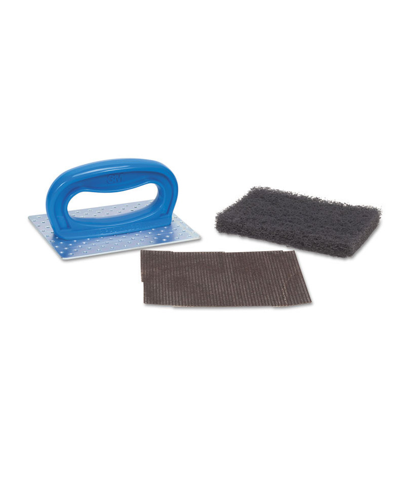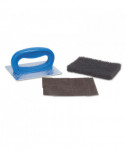 For use on griddles that have been cooled with three components: holder, polishing pad and screen. Helps protect hands from grease and burns while providing better cleaning leverage. Loosens carbonized grease and food debris from griddle. Comes with one Scotch-Brite Griddle Polishing Pad and Scotch-Brite Griddle Screen.