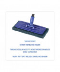 If you're looking for a convenient and effective way to clean your floor, look no further than the swivel pad holder. No need to buy batteries, special soap, and overpriced pads that only have one use. The sturdy swivel pad holder accepts a 4" x 9" scouring pad and threaded handle, which are sold separately. The heavy-duty spot welds and swivel mechanism ensure high quality and long product life.
