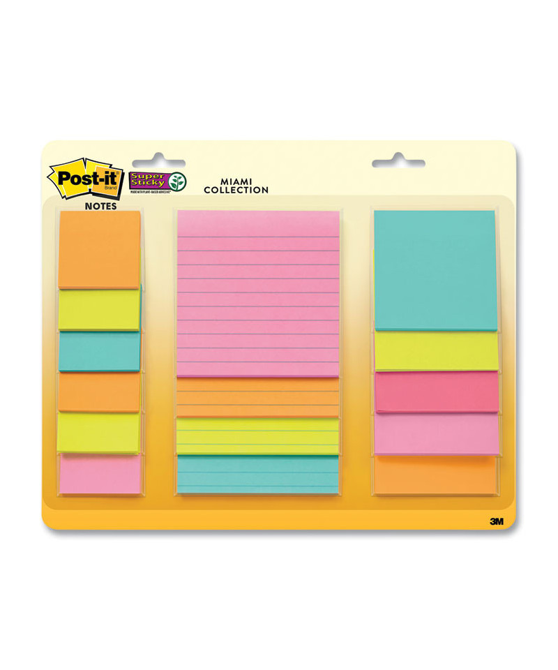 Post-it® Super Sticky Notes have 2X the sticking power to help you organize and keep on top of any project. Colors are from our Supernova Neons collection. Ideas are out of this world with the electric colors of the Supernova Neon collection. Sort your project by color and subject, and accomplish more. Post-it® Super Sticky Notes are recyclable and stick again and again and allow to move your notes with you throughout your day.