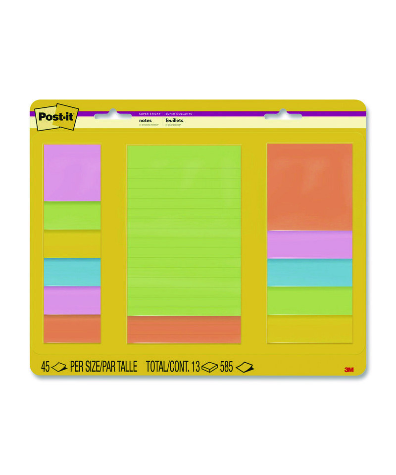 Super Sticky Pads in Energy Boost Colors, (11) Unruled, (2) Ruled, Assorted Sizes/Colors, 45 Sheets/Pad, 13 Pads/Pack