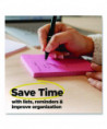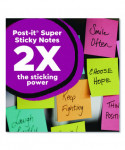 Experience the power of 2X stickiness and get the creative juices flowing with the bright, playfully dynamic colors of the Energy Boost Collection. Super Sticky Notes stick to practically everything, everywhere, and these vibrant, spirited colors can brighten your mood and your messages! Revolutionary technology ensures your notes will stick securely to most surfaces yet remove cleanly. Versatile and essential, they're the perfect solution for lists, reminders, color-coding, labeling, brainstorming, storyboarding and even mural art. As they adhere firmly to walls, windows, doors, worksurfaces, mirrors and more, you can stick and restick them wherever they're most likely to be noticed. To enhance your note-taking experience, download the free Post-it® App to your smartphone or tablet and instantly capture, save and share your important notes.