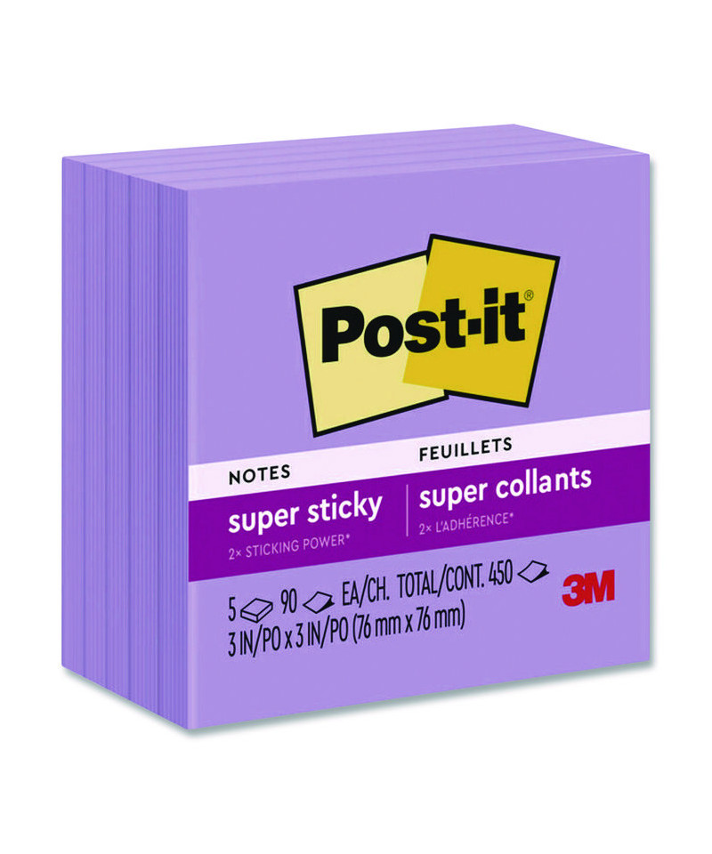 Super Sticky Notes, 3 x 3, Mulberry, 90 Sheets/Pad, 5 Pads/Pack