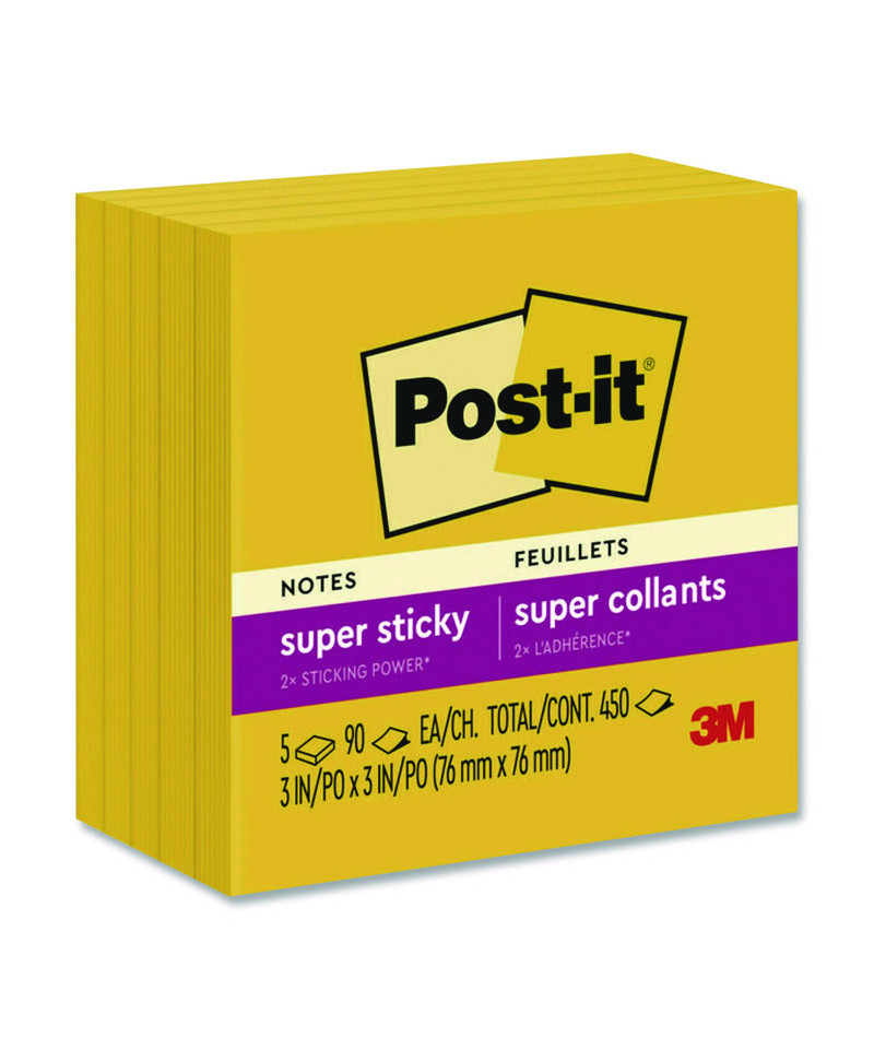 Super Sticky Note Pads in Playful Primary Colors, 3 x 3, Sunnyside, 90 Sheets/Pad, 5 Pads/Pack