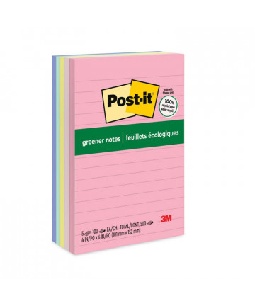 Post-it 100% Recycled Paper Super Sticky Notes are made from 100% recycled paper and feature two times the sticking power to make sure your message stays put. The water-based adhesive reliably sticks to doors, windows and walls, so you can take your to-do list anywhere. Succeed in your everyday tasks and feel good knowing these notes are made in a zero-waste-to-landfill plant. Packaging is also made from 100% recycled paper.