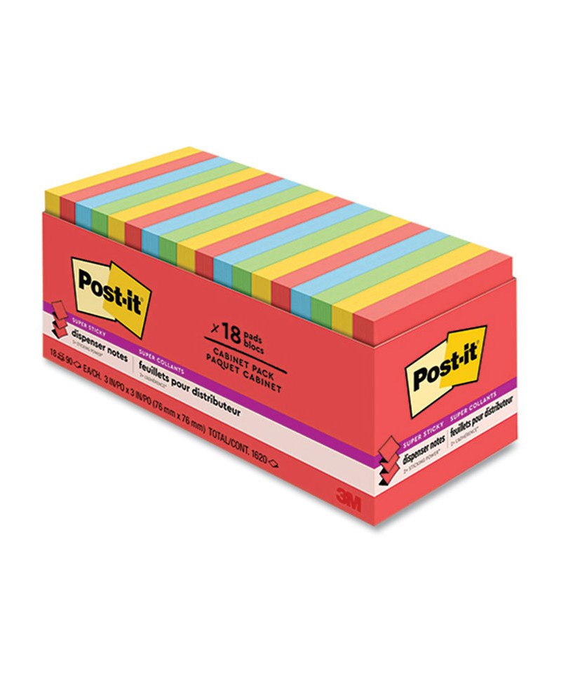 Experience the power of 2X stickiness and add joy to your day with the celebrated rainbow hues of the Playful Primaries collection. Super Sticky Notes stick to practically everything, everywhere! Revolutionary technology ensures your notes will stick securely to most surfaces yet remove cleanly! Versatile and essential, they're the perfect solution for lists, reminders, color-coding, labeling, brainstorming, storyboarding and even mural art. As they adhere firmly to walls, windows, doors, worksurfaces, mirrors and more, you can stick and restick them wherever they're most likely to be noticed. To enhance your note-taking experience, download the free Post-it® App to your smartphone or tablet and instantly capture, save and share your important notes.