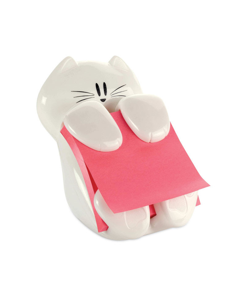 Keep Post-it® Notes within reach, with this cute, cat-shaped dispenser. The white dispenser comes with two 3" x 3" pads of Super Sticky Pop-up Notes in Rio de Janeiro colors. Weighted design allows for one-handed note dispensing. Great for work, home and school use. A fun way to keep notes at your fingertips!