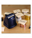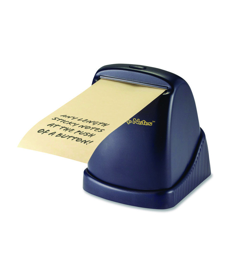 This battery powered dispenser lets you create a sticky note in just the length you need—even banner size! Saves money and waste. Notes are extra sticky for stronger hold yet repositionable. The notes feature a center adhesive that keeps the notes from curling. Sleek design does not clutter your workspace. Comes with one 150 ft roll of sticky paper that is equal to 600 3 x 3 sticky notes. Works on two AA batteries (included).